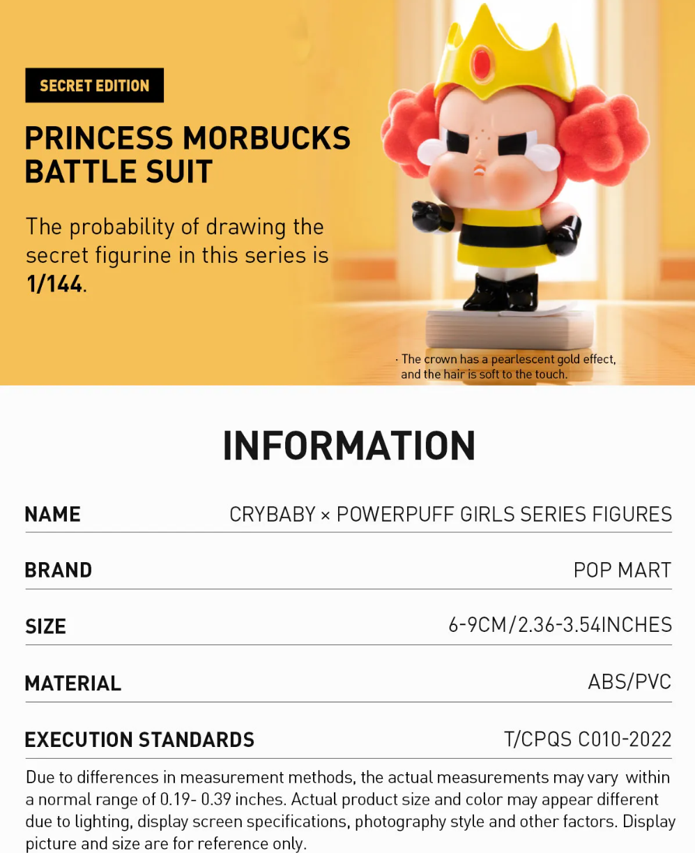 No refunds or exchanges will be accepted except in the case of broken or missing parts. Available in a single blind box or a whole set of 12. Twelve different designs with the possibility of a secret (chasers) are in some of sets randomly.