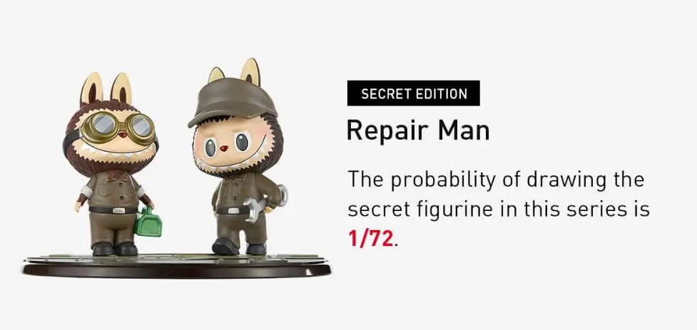 A whole set contains no repeated figures. If there is a secret figure in the box, one basic figure will be randomly replaced by it. Amounts purchased in quantities of 12 (a whole set, such as 12, 24, 36, and so on) will be sold as a whole set with no repetitions. If you purchase amounts less than 12, you will be receiving completely randomized blind boxes that may repeat.